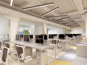 线条感,是这个区域设计的主要特征,顶部裸顶配上条形灯管,门套线,地面材料颜色把区域区分,形成了分区话管理。