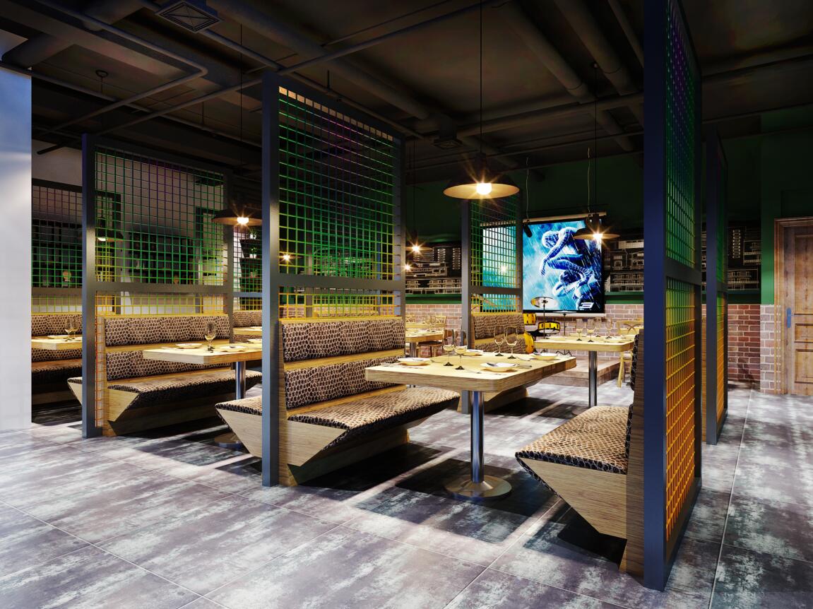 项目现场位于上地底商,面对人群为大众人群,以音乐烤吧,碳烤羊腿为主题,主题风格为工业风,金属和原木为主体。复古的红砖墙、复古的家具又有一丝复古的元素在整个空间里。整体空间灯光为暖黄色,增加客户的就餐食欲。